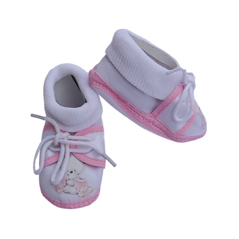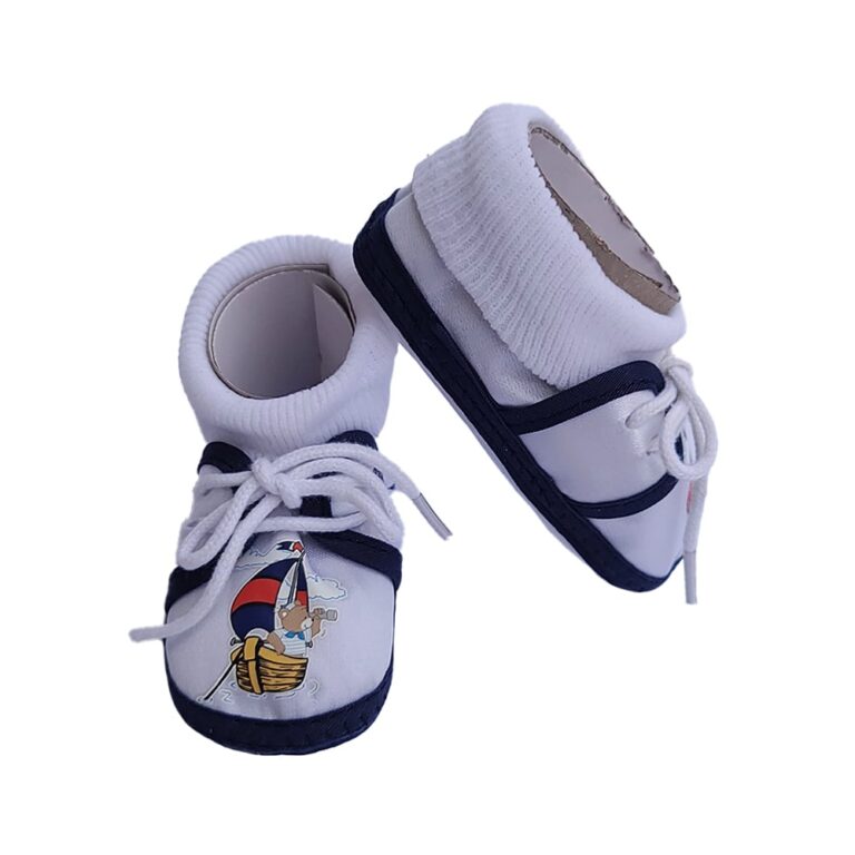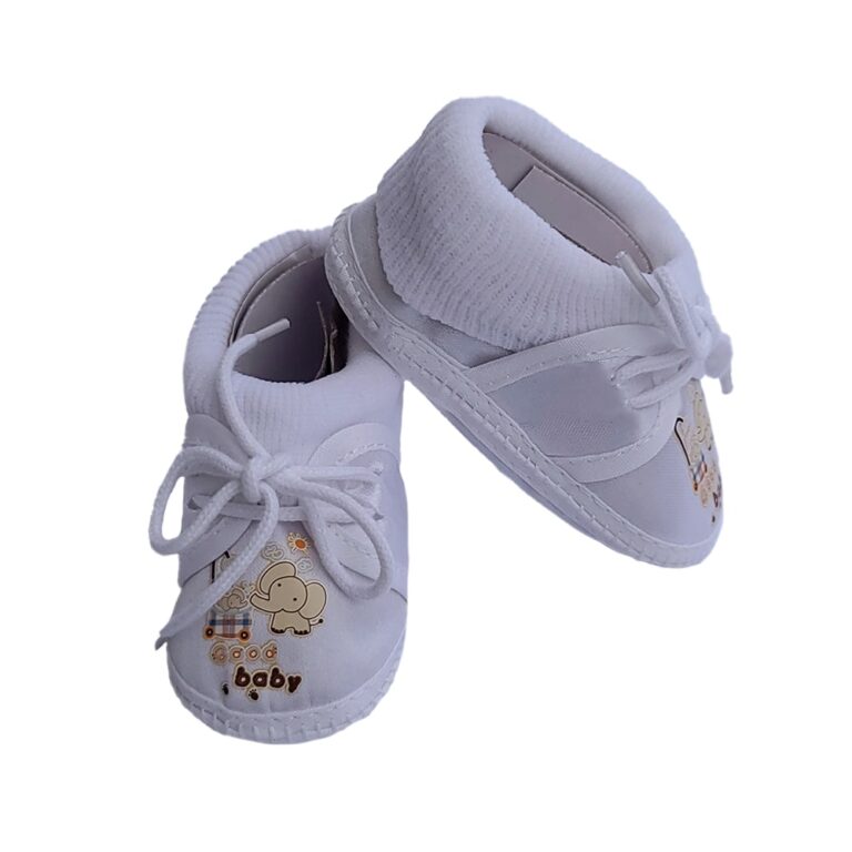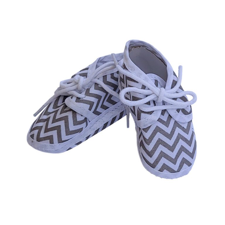Unisex Baby Booties – White with Grey Zigzag Pattern