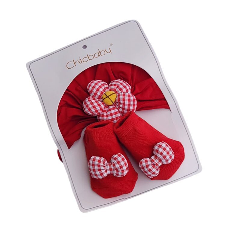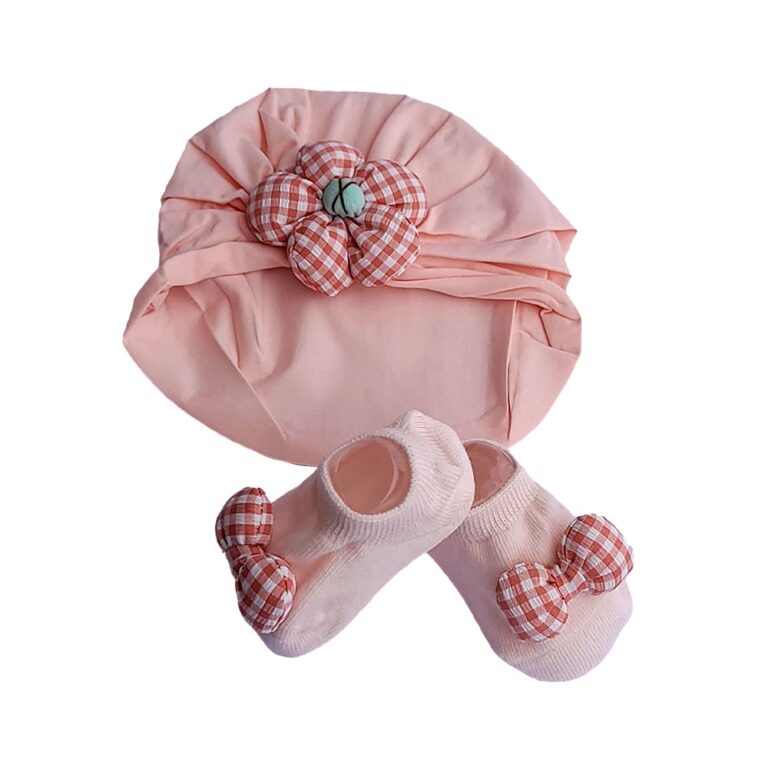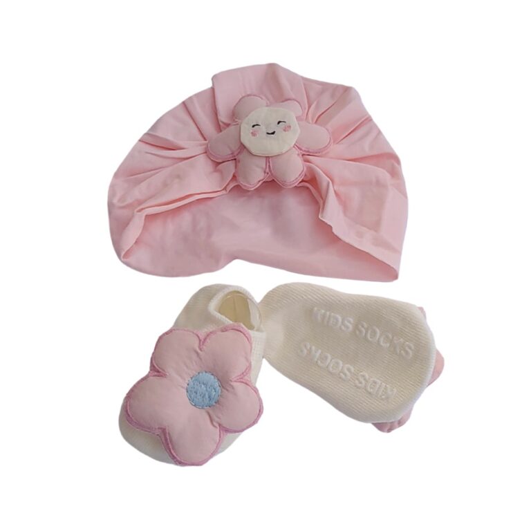 Baby Girl Turban with Socks Set – Cute Pink Flower