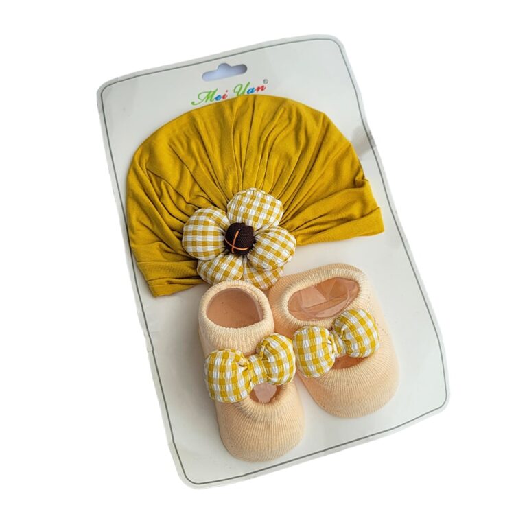 Baby Girl Turban with Socks Set – Mustard Yellow