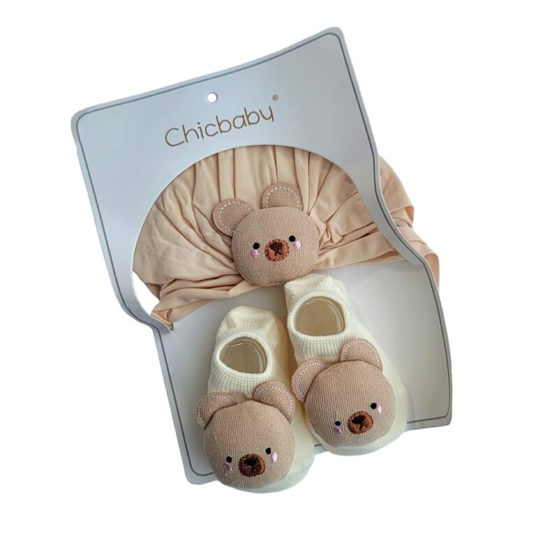 Baby Girl Turban with Socks Set – Cute Teddy Bear Design